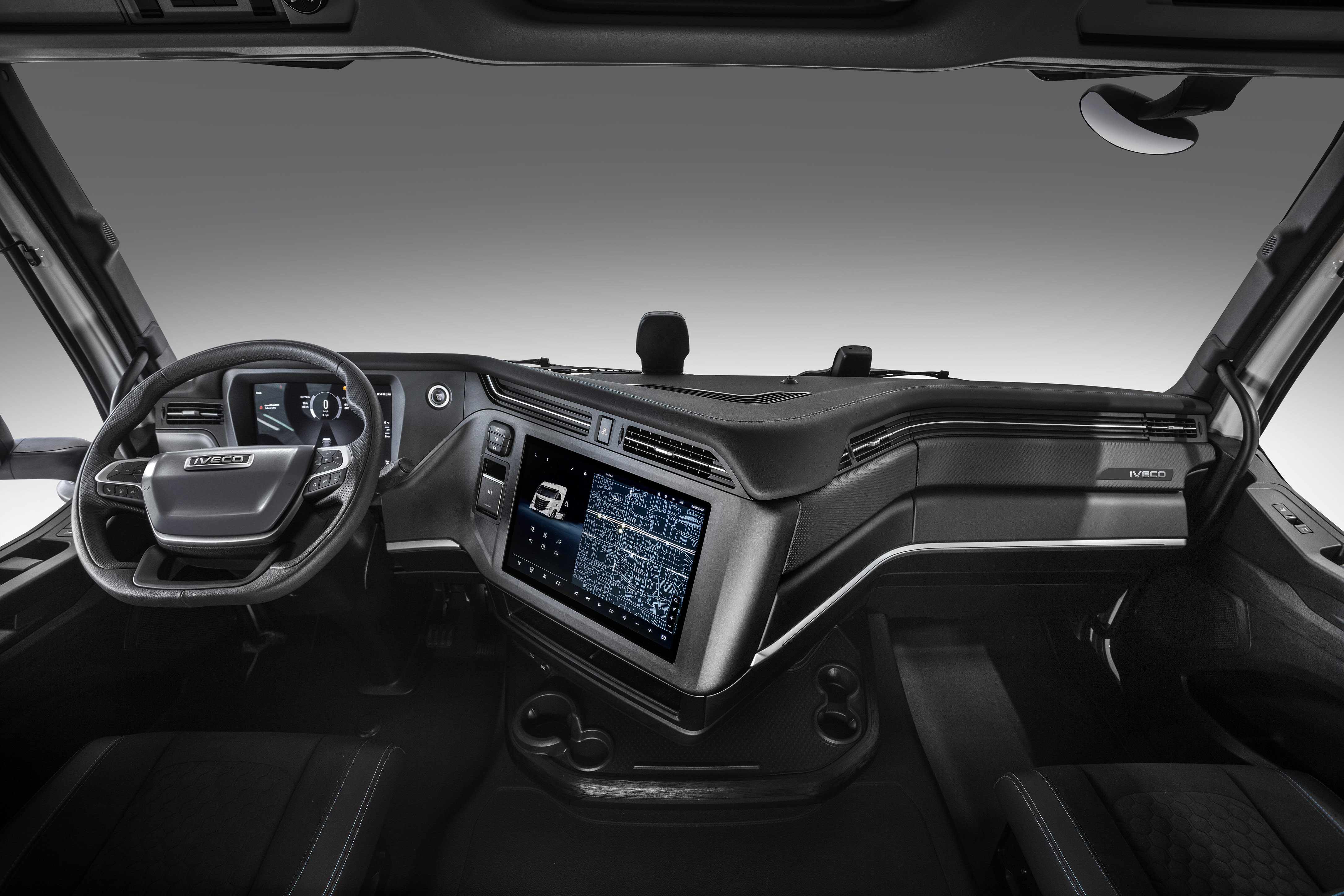 Prostorná kabina nabízí působivé uspořádání úložného prostoru, důraz na ergonomii a sadu technologií. Velký 12,8palcový digitální displej pro řidiče byl navržen tak, aby zobrazoval pouze nejdůležitější informace a snížil tak jeho kognitivní zátěž.