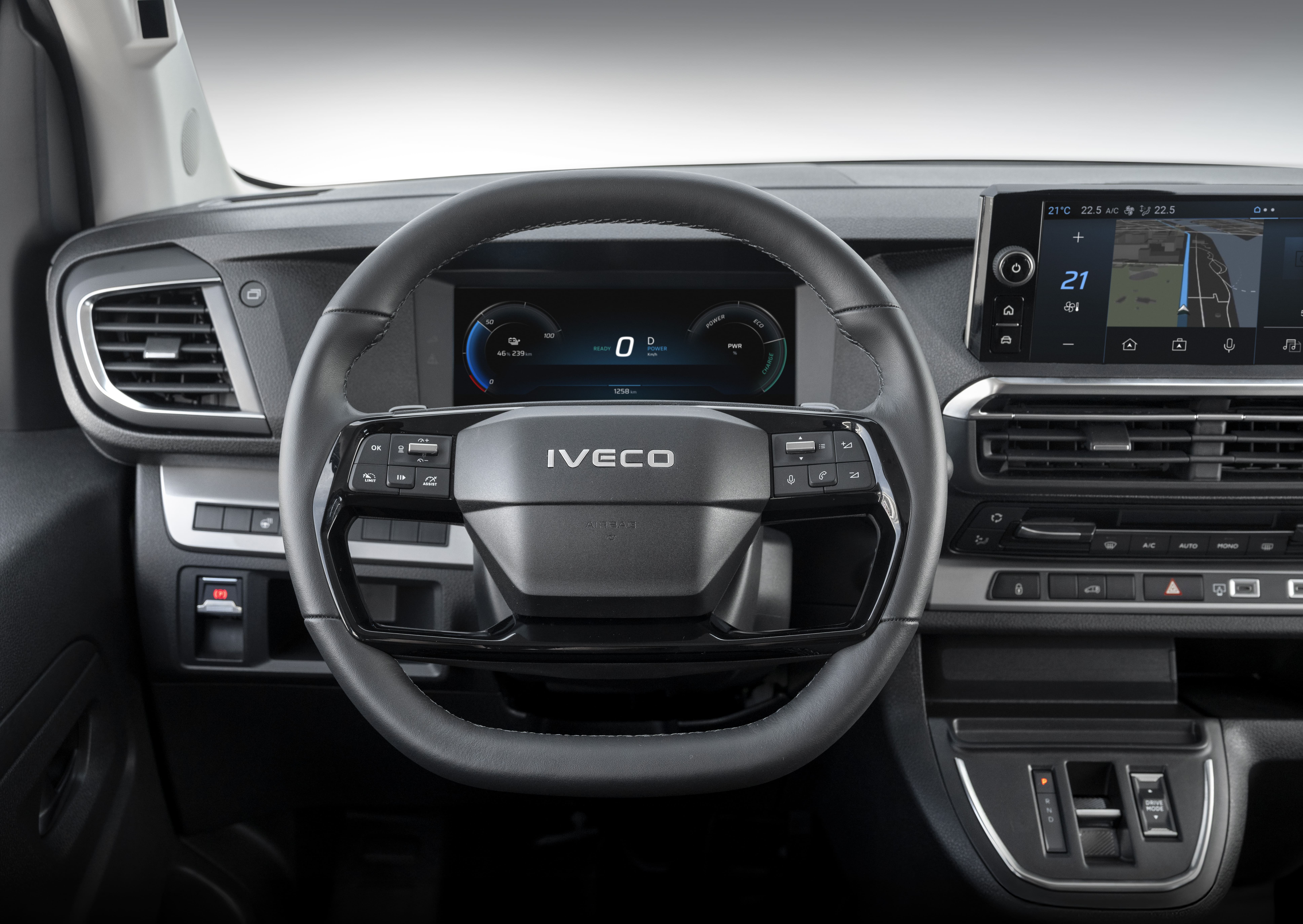 Uvnitř kabiny mají řidiči k dispozici prostorný a technologicky vyspělý interiér. Díky multifunkčnímu nastavitelnému stolku, několika nabíjecím portům (včetně bezdrátového nabíjení) poskytuje pohodlné pracovní prostředí – skutečnou mobilní kancelář. Stejně jako model eJolly je vybaven kompletní sadou bezpečnostních prvků, pokročilými asistenčními systémy řidiče úrovně 2+ (ADAS) a nese zlaté hodnocení Euro NCAP.