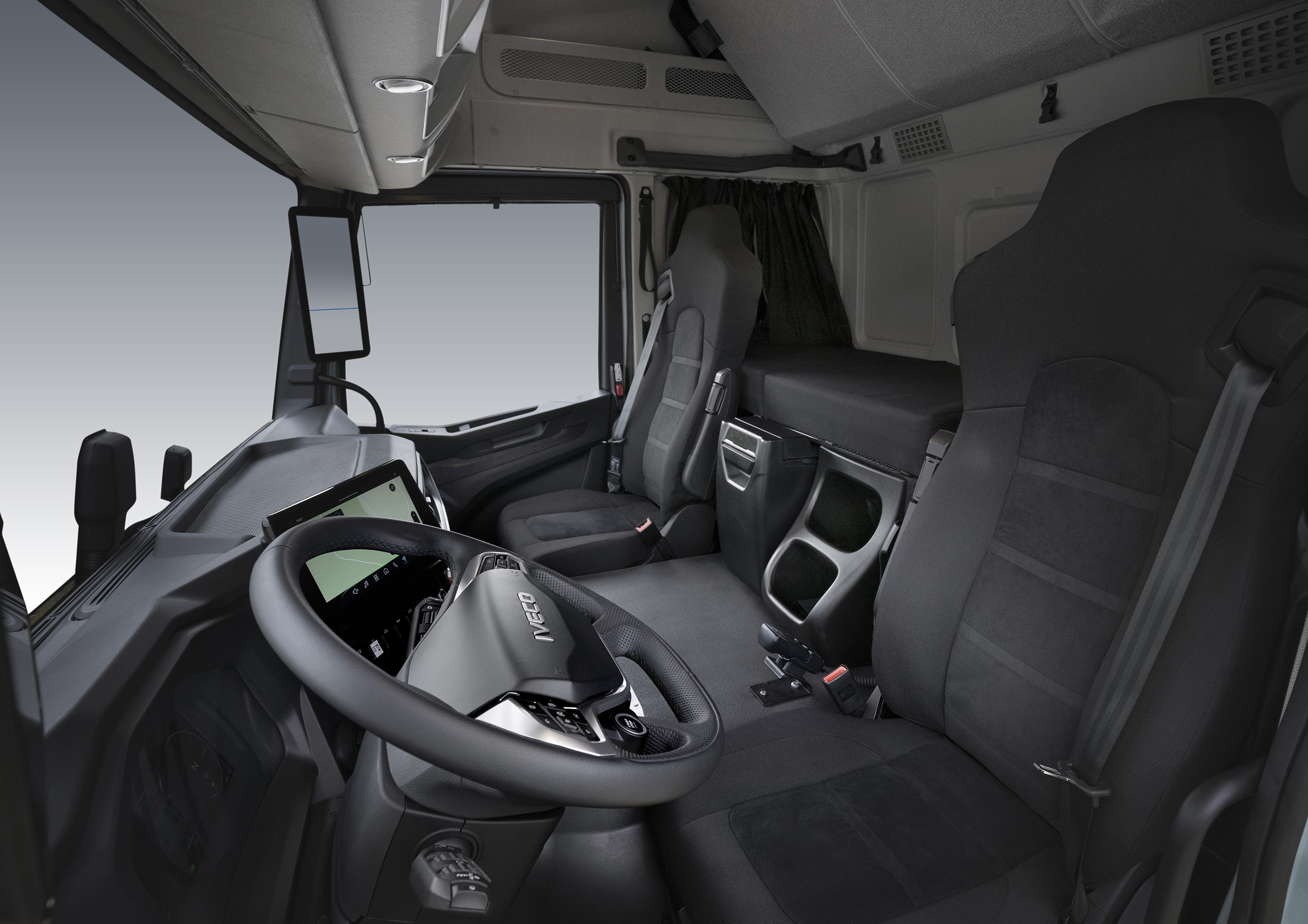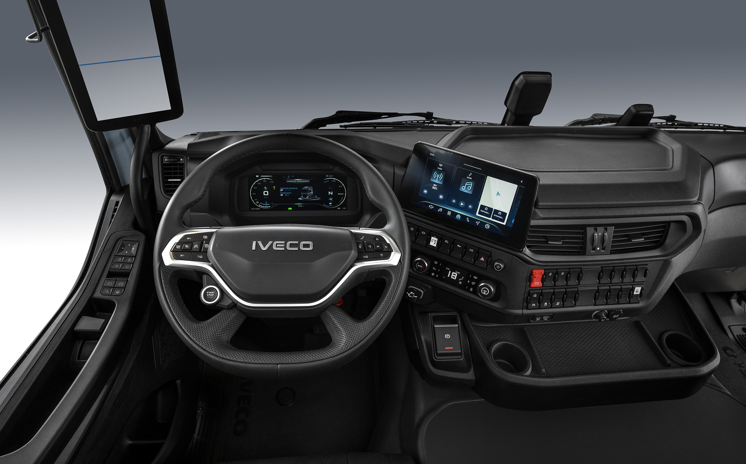 Desetipalcový displej infotainmentu poskytuje bohaté uživatelské rozhraní s funkcemi specifickými pro těžké nákladní vozy, jako je navigační systém, který obsahuje funkci Smart Routing, a integrovaný systém IVECO Driver Pal s aplikací Amazon Alexa pro hlasové ovládání. Infotainment také hostí aplikace třetích stran, které umožňují nástavbářům a zákazníkům interakci s funkcemi nástavby prostřednictvím konektivity vozidla.