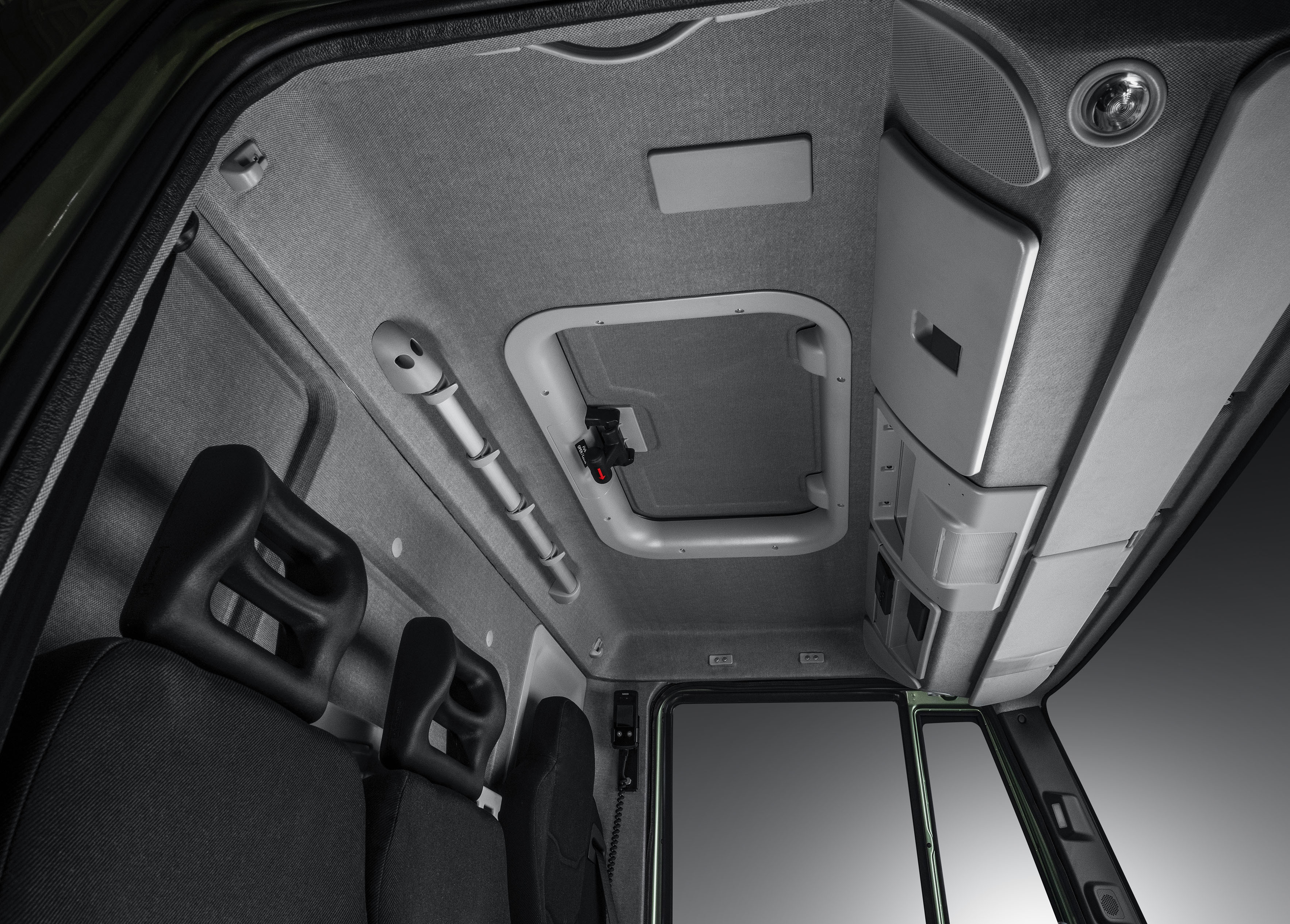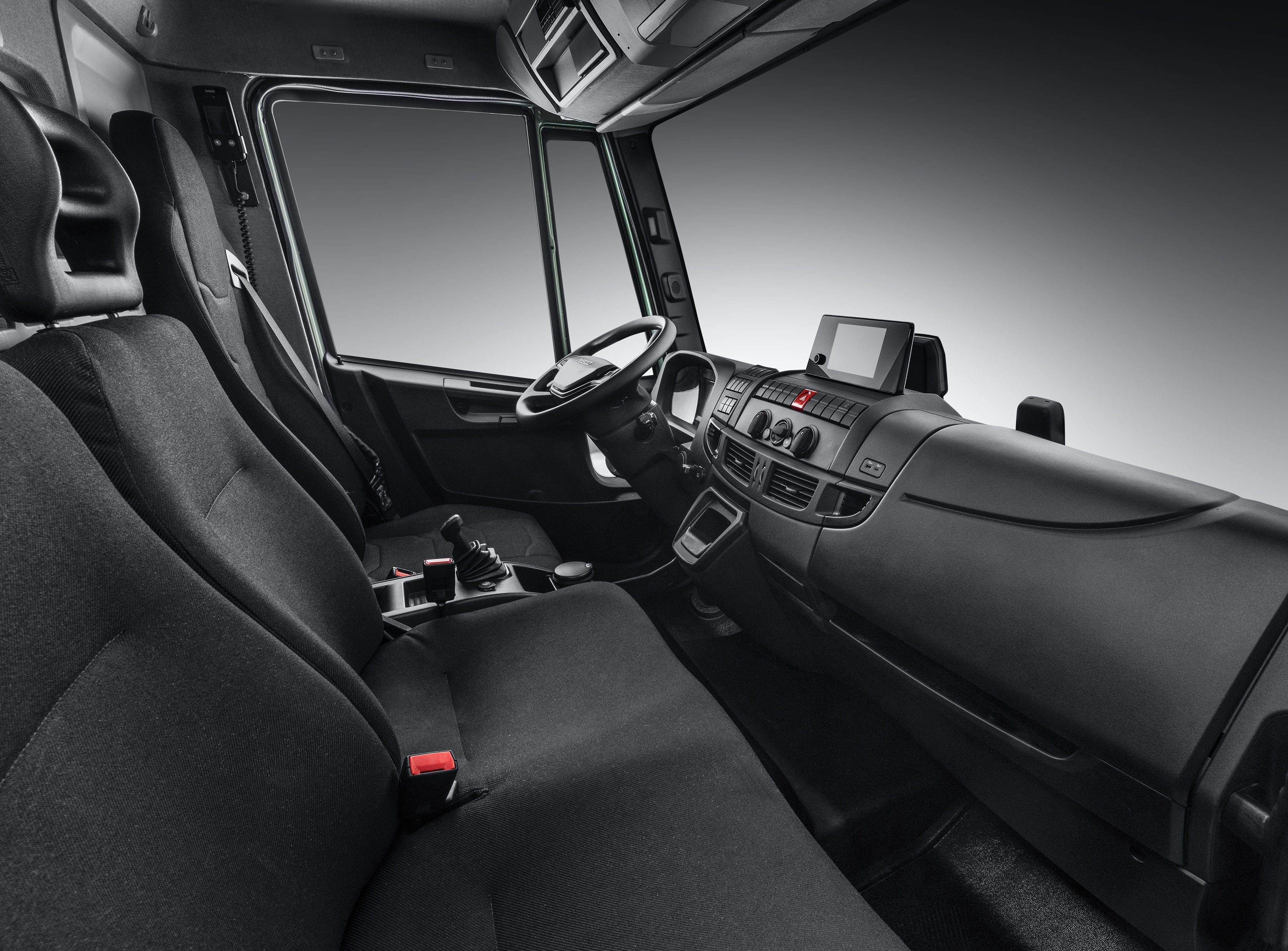 Dalším technologickým doplňkem kabiny je nový informační systém se 7palcovou dotykovou obrazovkou, který řidiči umožňuje přenést na palubu svůj digitální život a přístup k navigaci. K dispozici je také rádio DAB a zadní kamera. Cestující mohou plně využívat dva USB porty pro nabíjení chytrých zařízení, zatímco připojení chytrého telefonu s operačním systémem iOS nebo Android umožňuje Apple CarPlay a Android Auto, což řidičům umožňuje přístup ke známým aplikacím, které denně používají. Každá mise začíná u klíče a tento nový model je vybaven novým elektronickým klíčem s moderním a zároveň robustním designem, který je tím správným doplňkem pro různé mise vozidla.