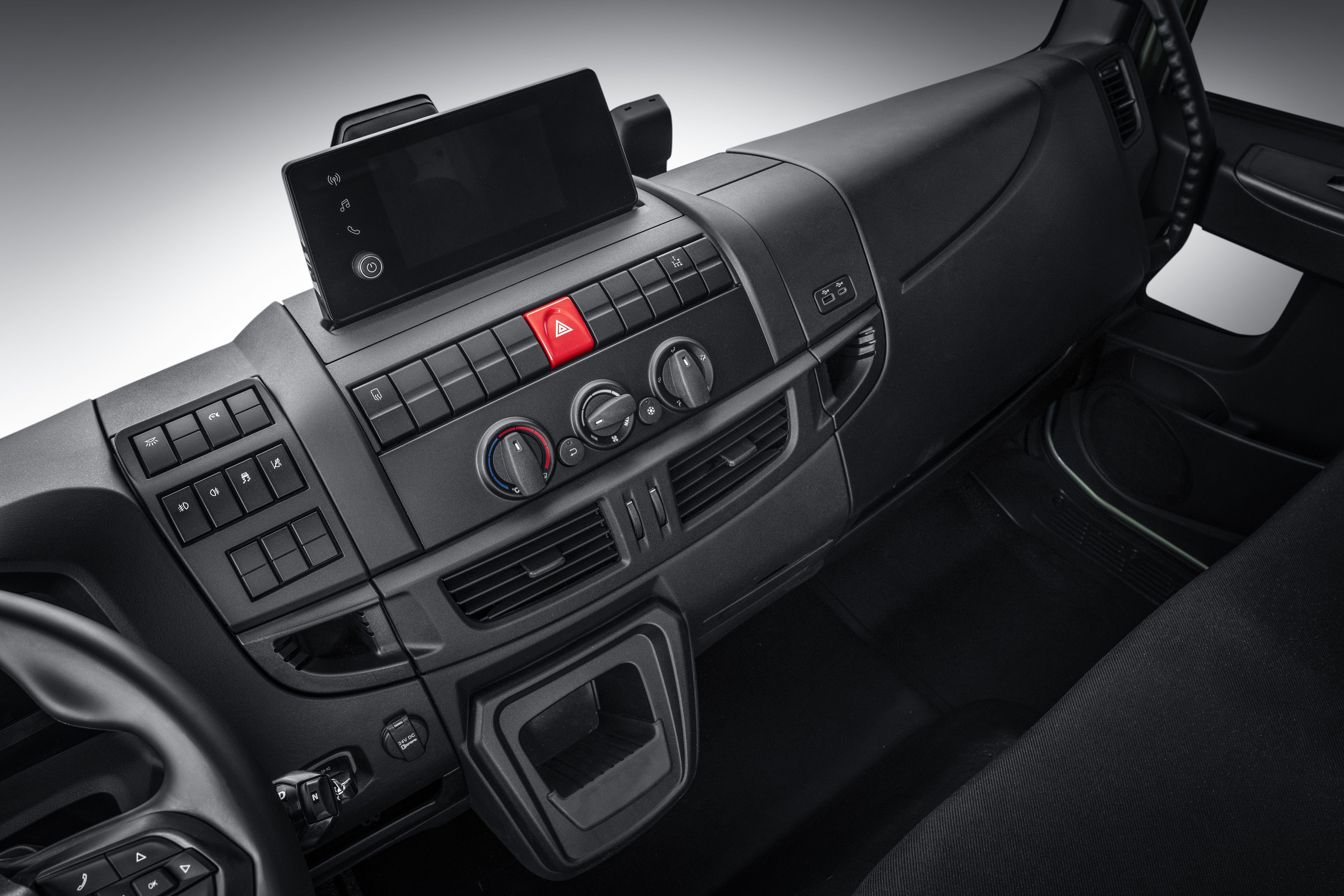 Aktualizace přístrojové desky jsou navrženy tak, aby řidiči usnadnily život, zvýšily jeho pohodlí a poskytly mu více možností. Nový plně digitální panel s 10palcovým displejem zaujímá v kabině hlavní místo a vyznačuje se bohatou grafikou, která poskytuje vynikající přehled o informacích o vozidle na první pohled. Tento displej lze nakonfigurovat podle preferencí řidiče, což pomáhá omezit rozptylování pozornosti a zlepšit použitelnost. Díky novým ovládacím prvkům na sloupku řízení má řidič vše na dosah ruky.